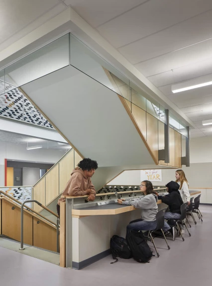 A complete rebuild of one of the district’s oldest schools, this project consisted of four major phases. Work was performed on a fully operational campus and included an early turnover of the gym, locker rooms, and support spaces just 12 months into construction. This allowed the existing gym to be demolished making way for completion of the theater, commons, administrative and counseling offices, and other spaces to be completed in less than 10 months.